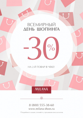 Долгожданная акция «День шопинга» в магазинах MILANA! -30% на второй товар в чеке!