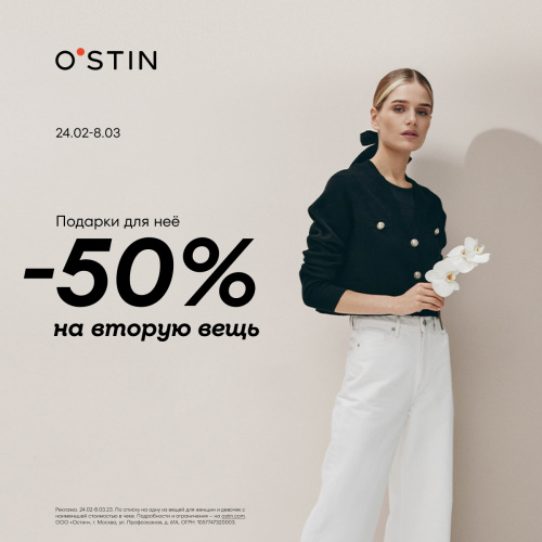 С 24 февраля по 8 марта каждая вторая вещь для женщин и девочек - за полцены!