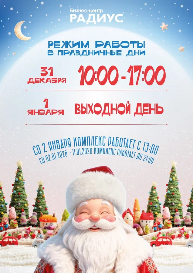 Уважаемые посетители, обратите внимание на новогодний режим работы ДЦ "Радиус"