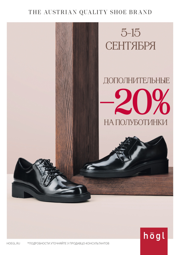 Дополнительная скидка 20% на полуботинки всех коллекций.